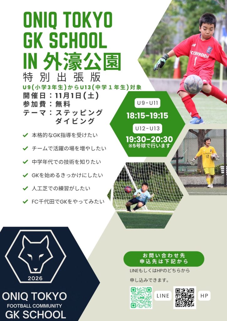 ONIQ TOKYO GK SCHOOL(オニック トウキョウ ゴールキーパー スクール)は