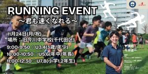 今井遼一氏にお越しいただいて幼児年代に必要な運動動作・走り方を教えていただくイベントを開催いたします。
